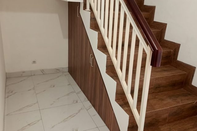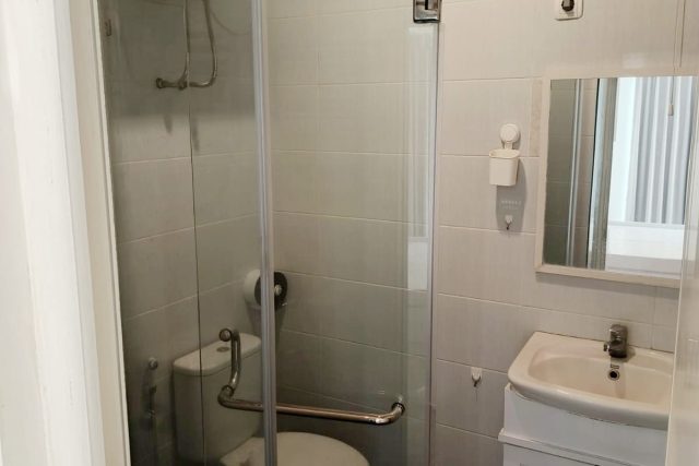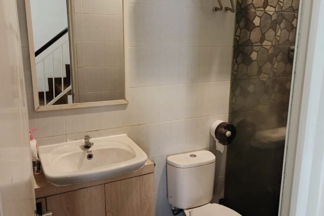 – Kamar Mandi : ada Kaca Tempered Pembatas dan Kabinet di bawah Wastafel