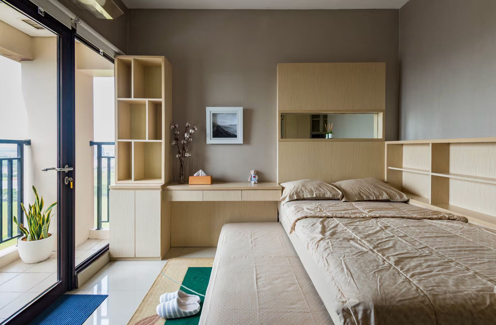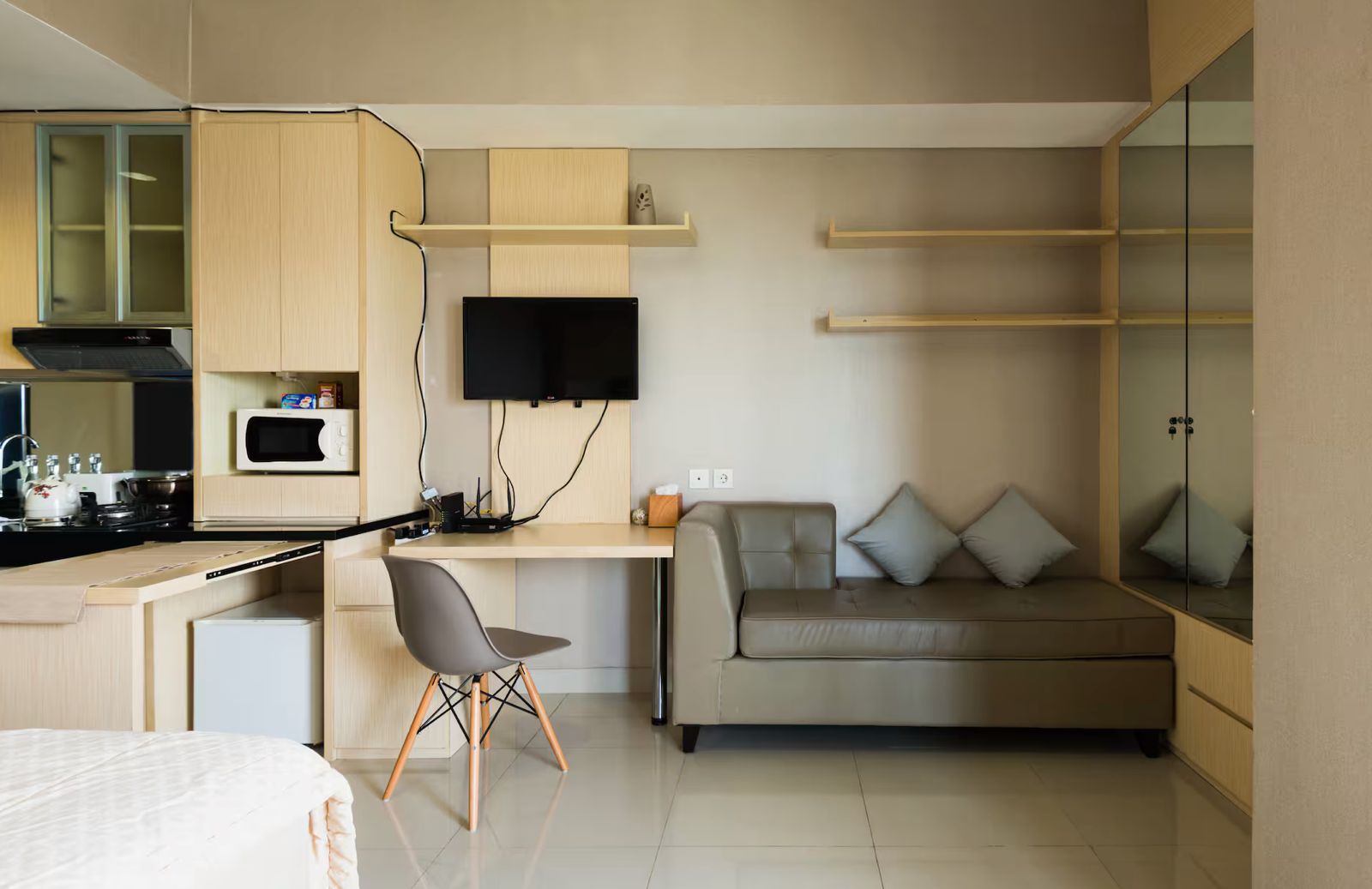3. Full Furnished (2 Single Bed atas Bawah, Smart Tv, Kulkas, Kompor 2 Tungku, Water Heater, Wi-Fi, Gym, Kolam Renang)