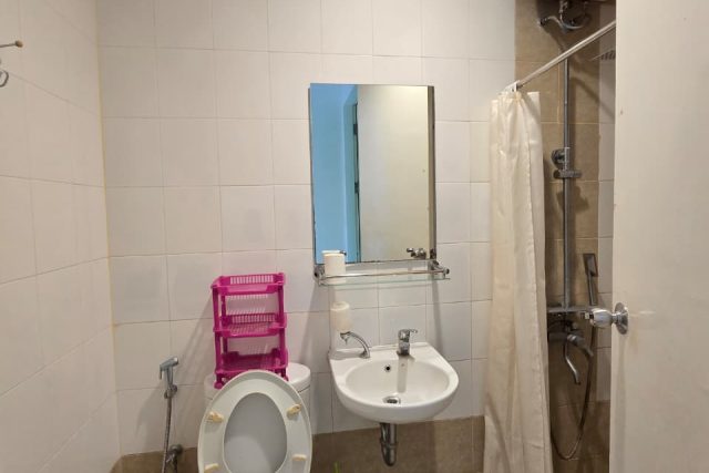 – Kamar utama dengab Queen bed + meja rias + lemari full kaca 220×250
